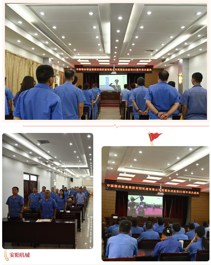 為深入學(xué)習(xí)貫徹習(xí)近平新時代中國特色社會主義思想,扎實開展愛國主義和革命傳統(tǒng)教育,9月3日上午,安陽機械黨委組織班子成員、各支部書記及50余名在職黨員,集中觀看“紀(jì)念中國人民抗日戰(zhàn)爭暨世界反法西斯戰(zhàn)爭勝利80周年閱兵式”直播,共同見證祖國強軍風(fēng)采,汲取奮進(jìn)力量。